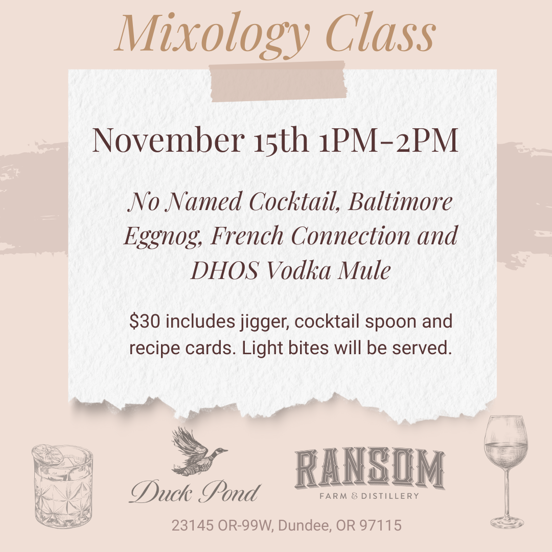 🗓️ Nov 15th - 🕒 1PM-2PM - ✨ At Duck Pond Cellars in Dundee, OR