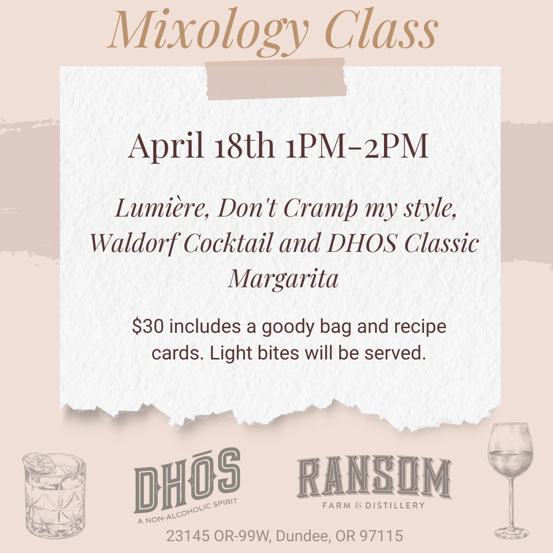 For just $30, enjoy an immersive experience that includes a goody bag, recipe cards, and light bites. Learn to crafted Cocktails: Lumière, Don't Cramp my style, Waldorf Cocktail Mocktails: DHOS Classic Margarita
