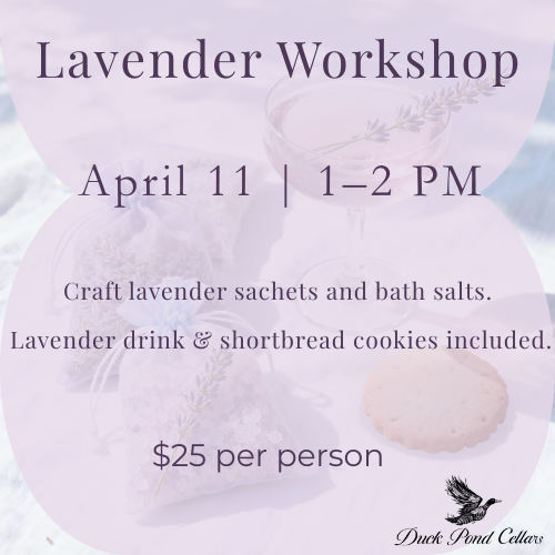 Unwind with us as you craft fragrant lavender sachets and soothing bath salts, then enjoy a lavender-inspired drink and buttery shortbread cookies while you create. A relaxing, scent-filled afternoon perfect for welcoming spring. $25 per person