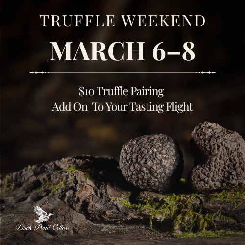 From March 6 through 8, enhance your tasting with our $10 Truffle Pairing Add On crafted to showcase the earthy elegance of truffle alongside our wines. Available exclusively during Willamette Valley Truffle Weekend as an add on to your tasting experience.
