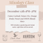 For just $30, enjoy an immersive experience that includes a goody bag, recipe cards, and light bites. Learn to craft Cocktails: Union Cocktail, Future Fix, Orange Brûlée Posset Mocktail: DHOS Bloody Mary