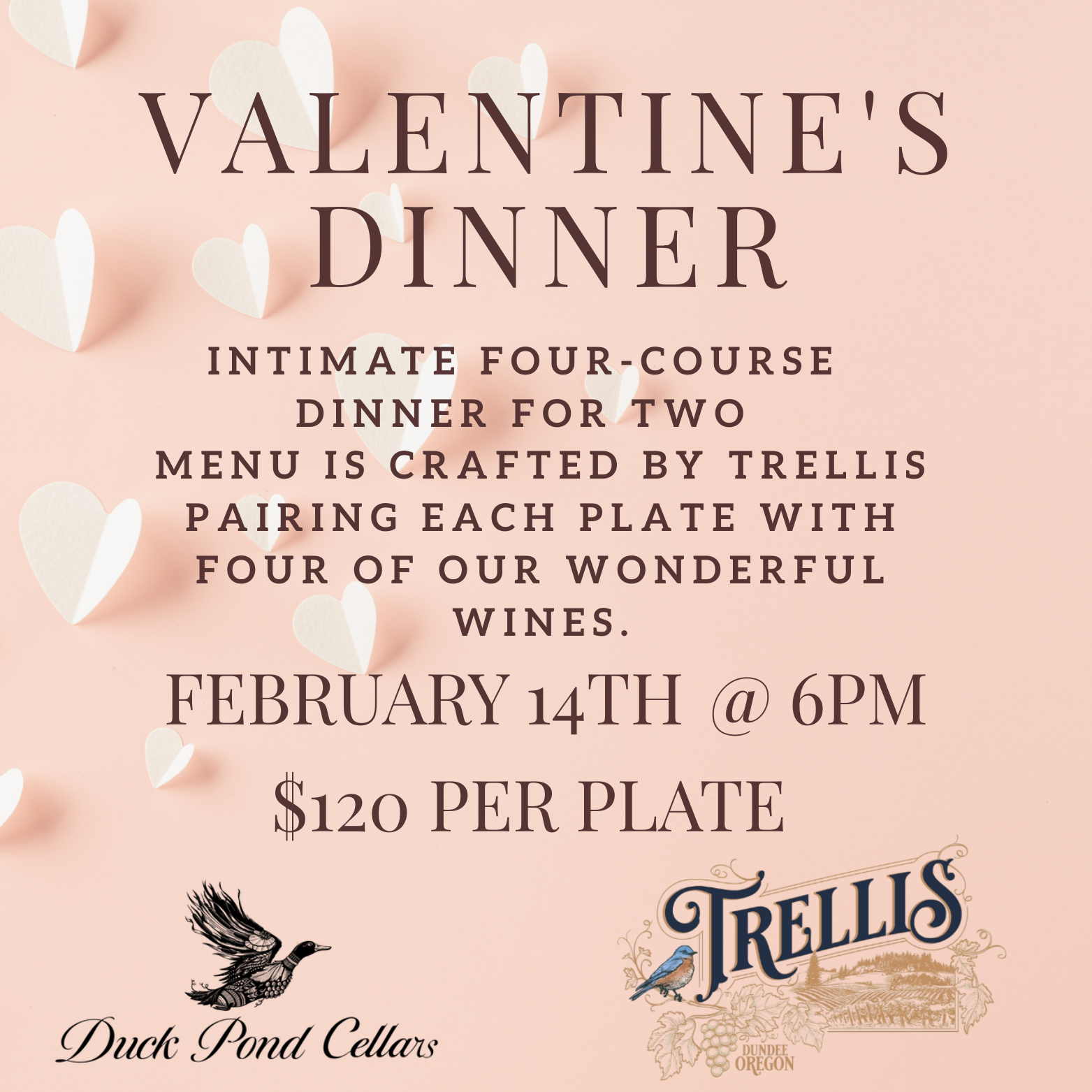 This romantic evening pairs seasonal, Oregon-inspired cuisine with beautifully matched wines, creating a relaxed yet refined dining experience designed to be shared. Each course is intentionally paired to highlight both the food and the wine, making this a perfect night out for couples looking to celebrate without pretense.