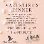 Celebrate Valentine’s Day with an intimate, thoughtfully curated dinner for two at Ransom Spirits, featuring a multi-course menu crafted by Trellis, one of our favorite local culinary partners.